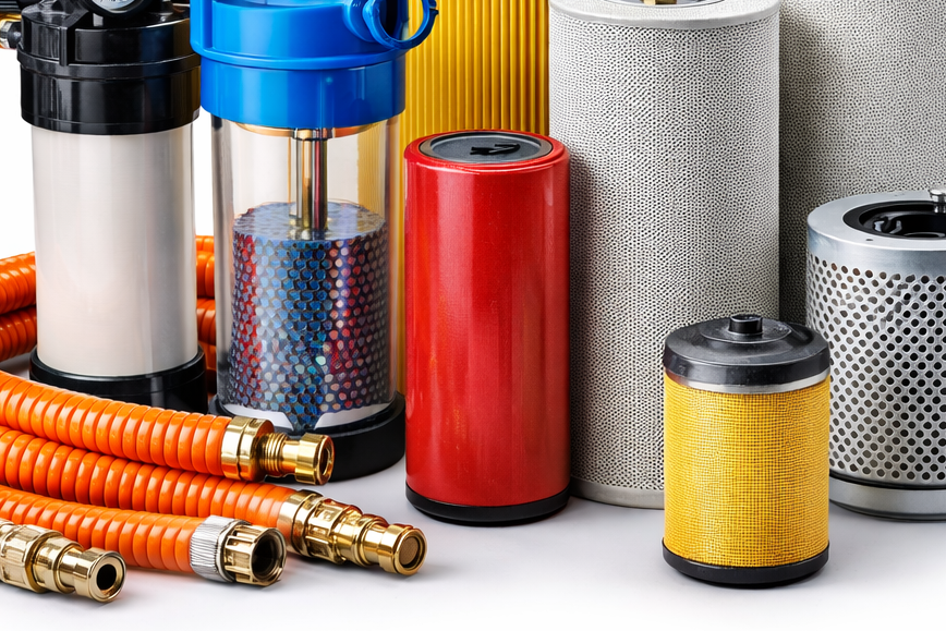 Common accessories include hoses, regulator and filter units (FRL), quick-connect fittings, and air dryers depending on your use case. Contact us to make sure we can create the package that meets your requirements.