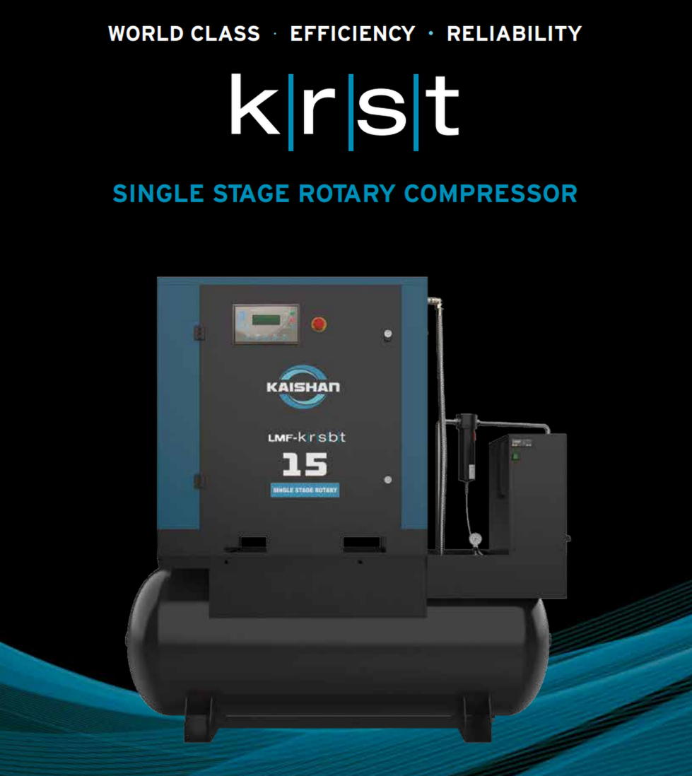 Kaishan KRST compact Rotary Screw Air Compressor series are the ideal package for industries requiring high performance from a small footprint compressed air unit. These compressors are designed to be easily installed whilst producing maximum output with outstanding reliability.